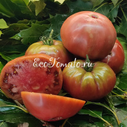 Индет, среднеспелый. Помидоры округлые бифштексы, розовые, масса 500-800 грамм и до 1 кг. Сплошное помидорное мясо, вкус насыщенный, сбалансированный. Отличный салатный сорт.